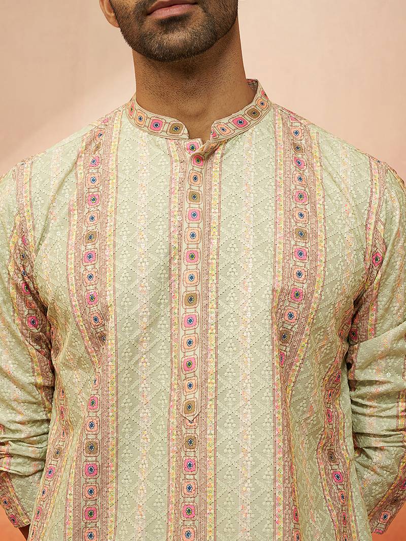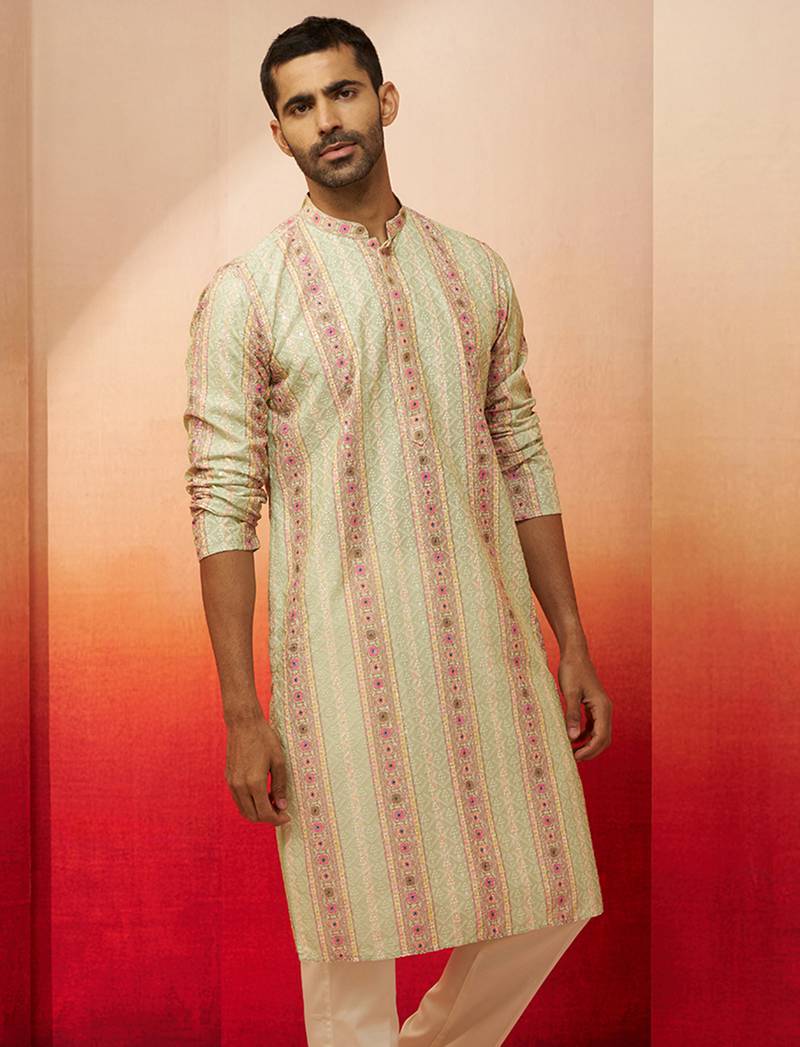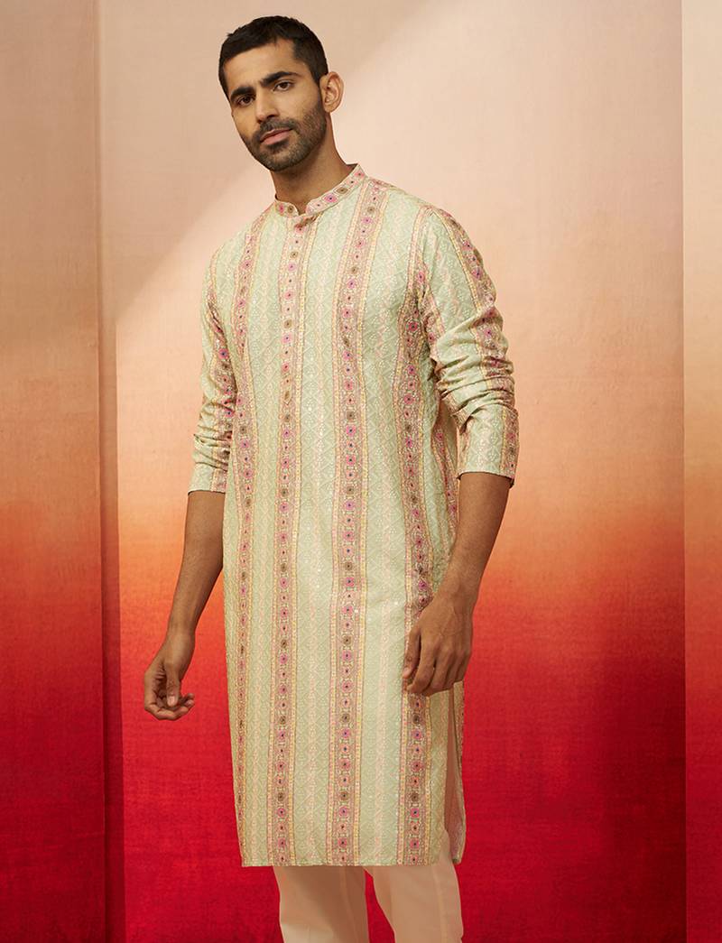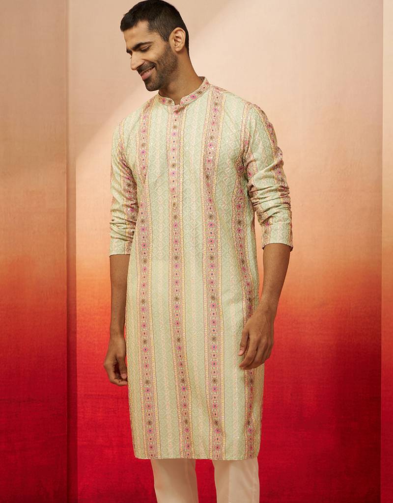 Product Name | Men Mint Green Cotton Sequin Embroidered Kurta Premium Festive Glitz Party Wear | |
