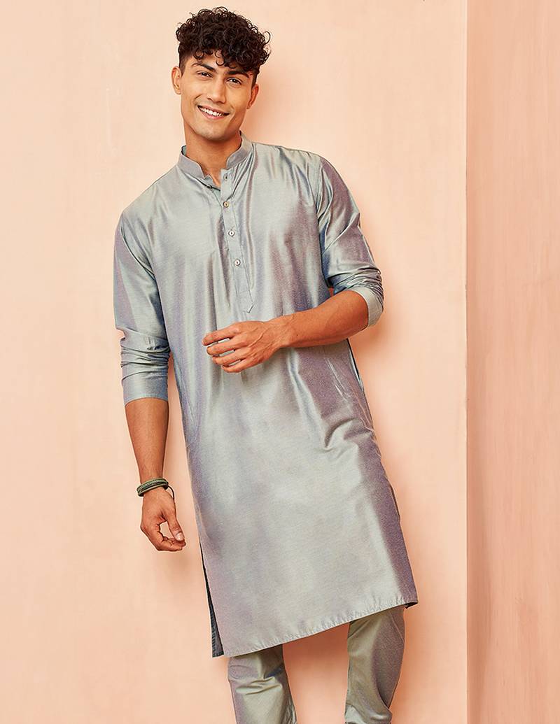 Product Name | Men Silver Viscose Kurta Long Sleeve Mandarin Collar Festive Wedding Traditional Ethnic Wear | |