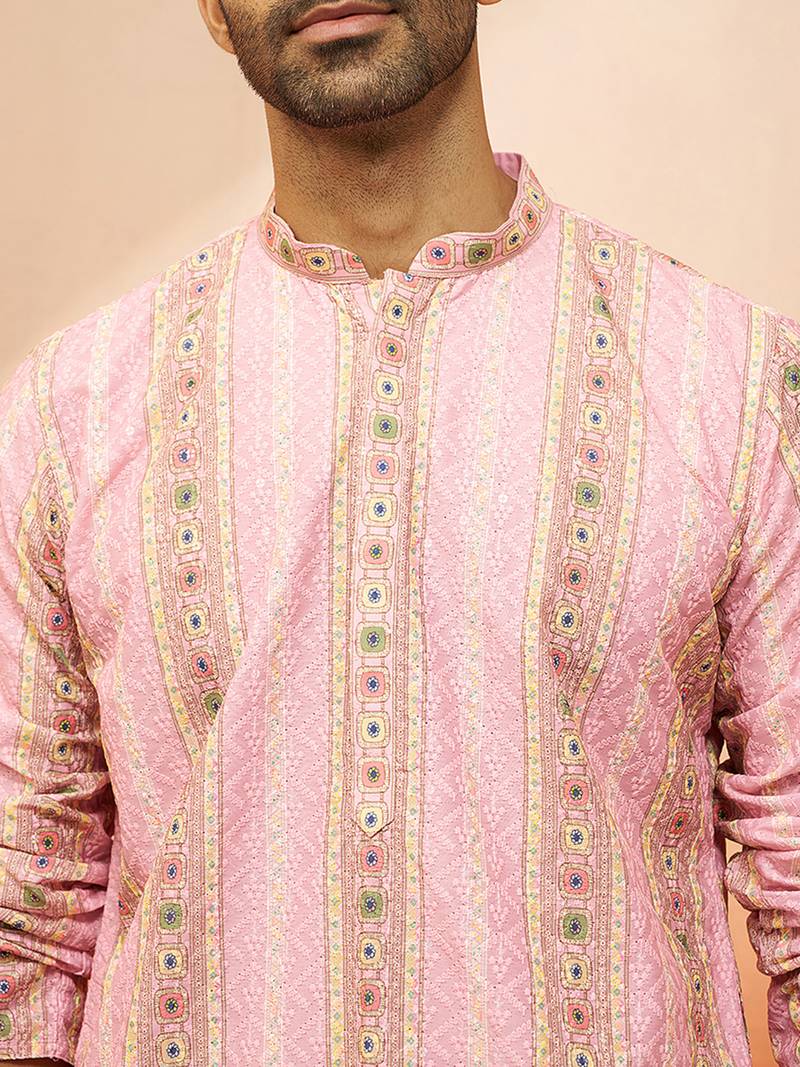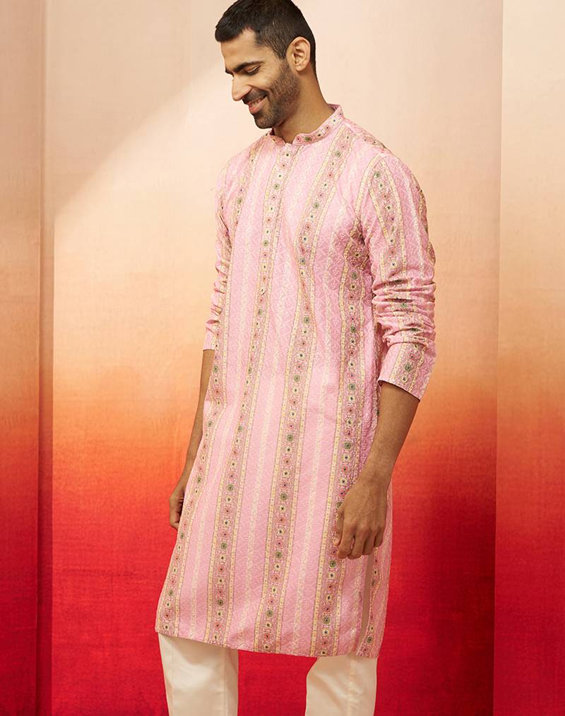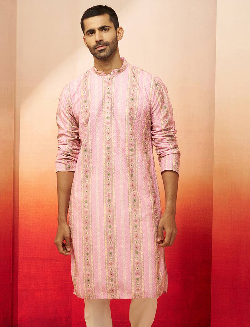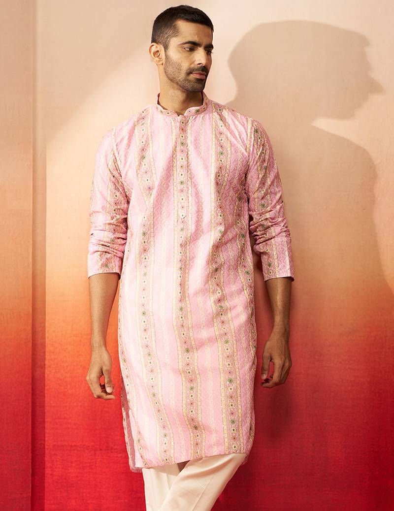 Product Name | Men Peach Cotton Sequin Embroidered Kurta Premium Festive Glitz Traditional Wear | |