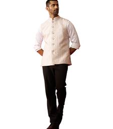 Men cream silk nehru jacket - premium jacquard ethnic party festive wear
