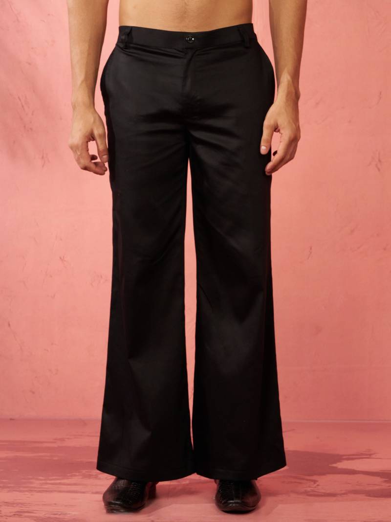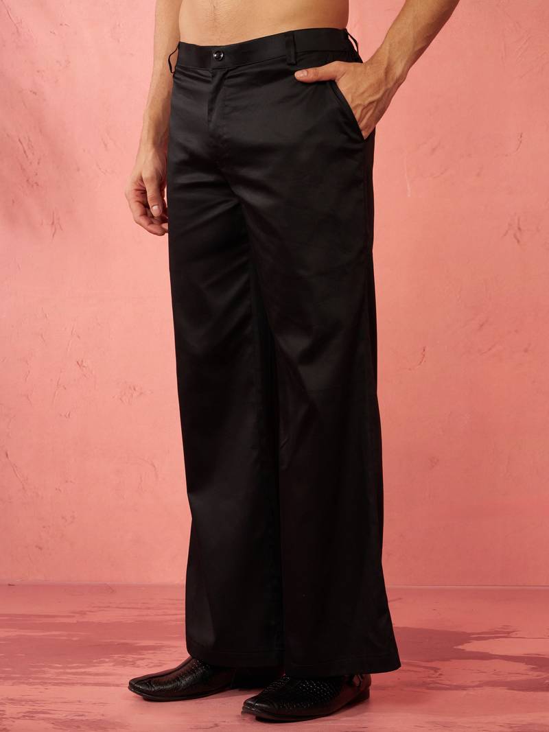Product Description | Enhance Your Festive Wardrobe With Vastramay's Black Fine Satin Palazzo Trousers. Features Premium Satin Fabric With Flare Styling And Secure Button Zip Closure For Traditional Occasions. |