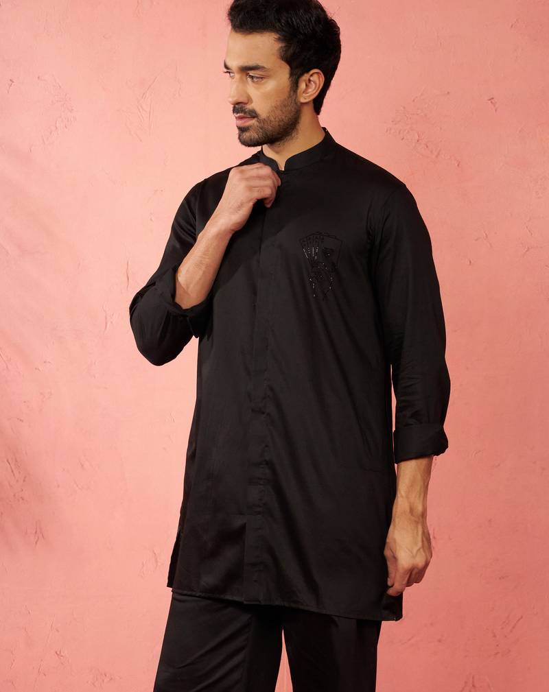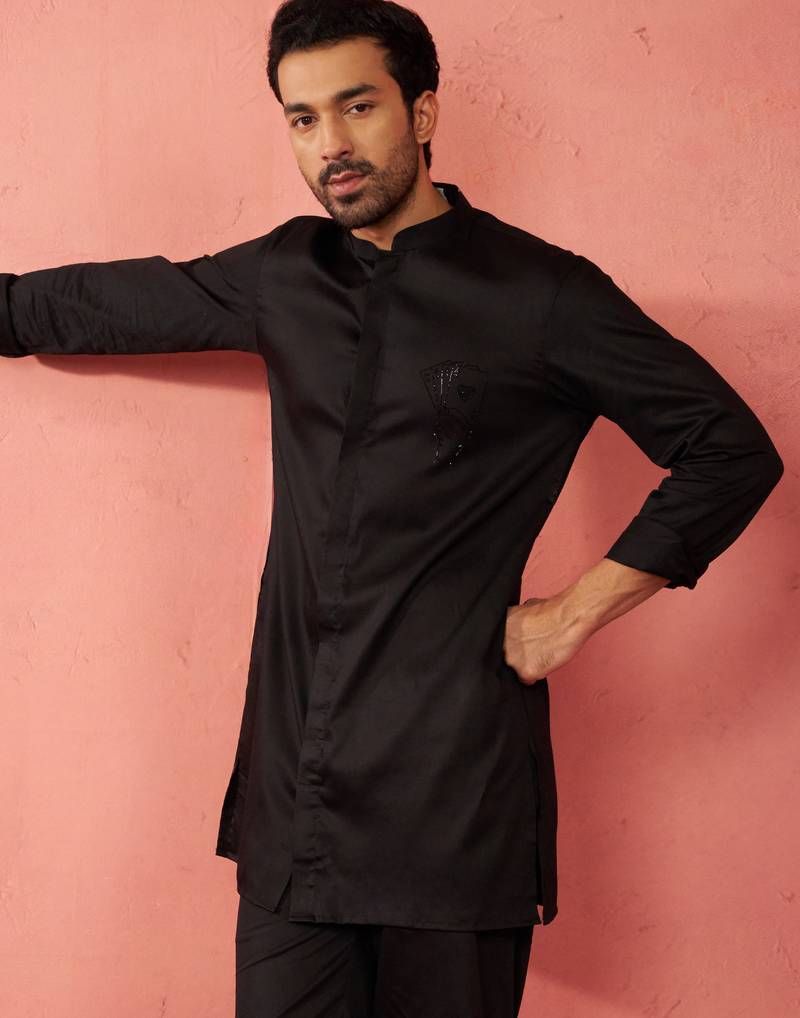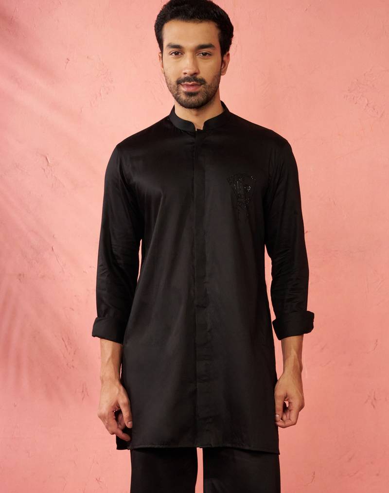 Product Name | Men's Black Mid Length Kurta Fine Satin Stone Work Festive Wear | |