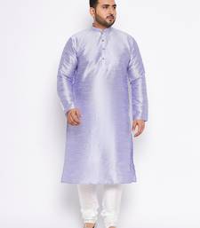 Men's bluish white silk blend kurta pyjama set
