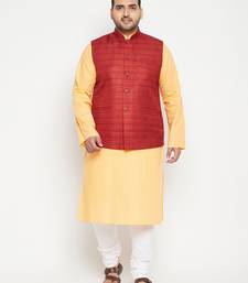 | Product Name | Fawn, Maroon And White Cotton Blend Jacket Kurta Pyjama Set | |