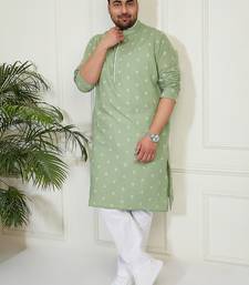 | Product Name | Men's Green And White Cotton Kurta Pyjama Set | |
