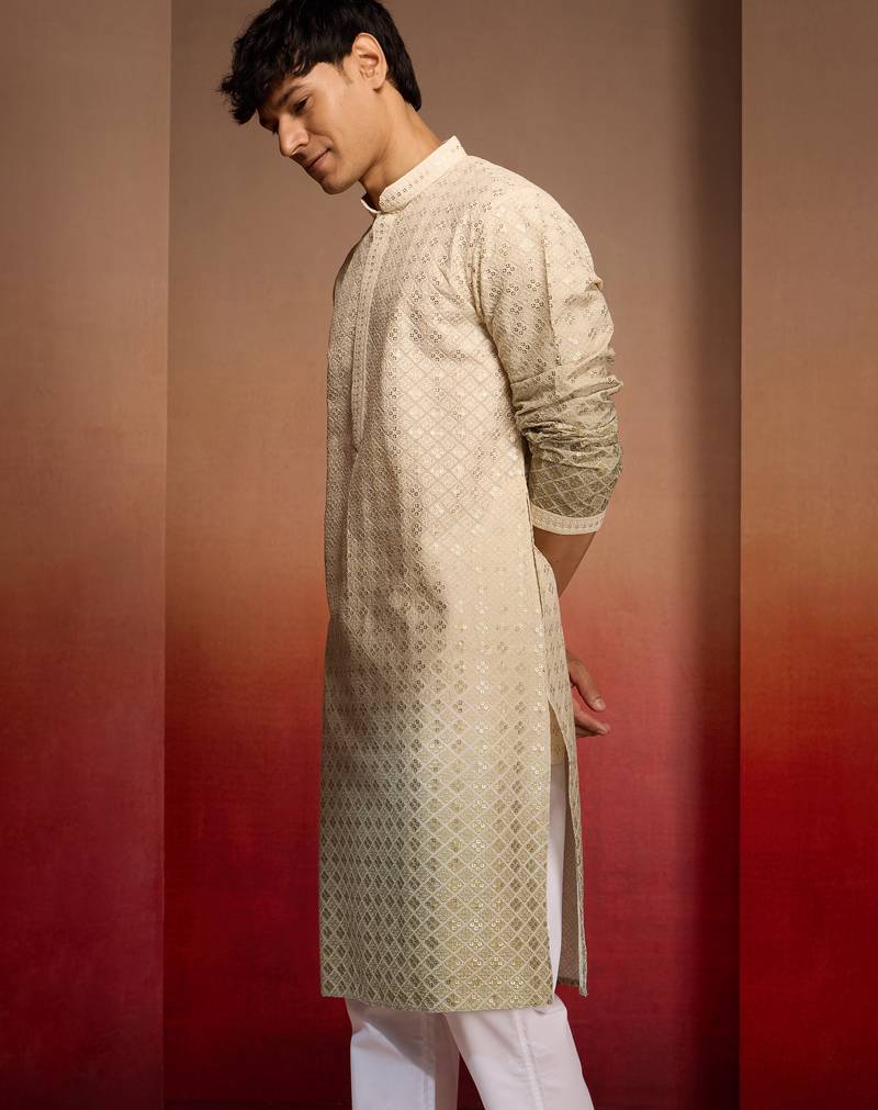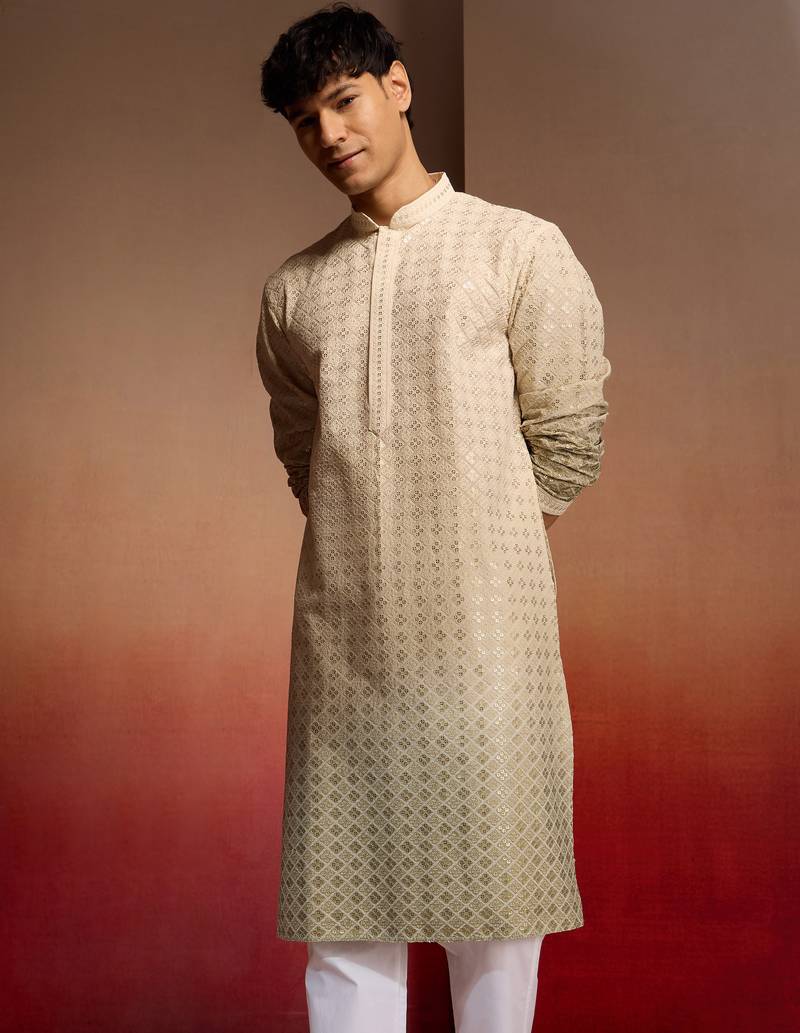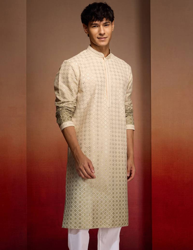 Product Name | Men's Green Ombre Long Kurta Cambric Cotton Sequin Embroidered Festive Wear | |