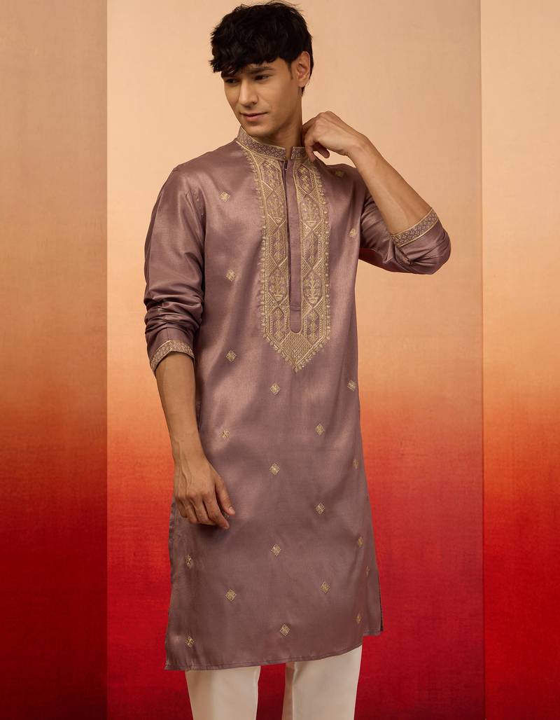 Product Name | Men's Lavender Resham Embroidered Silk Kurta Premium Festive | |
