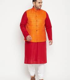 | Product Name | Maroon, Orange And White Cotton Blend Jacket Kurta Pyjama Set | |