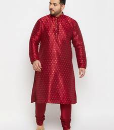 Men's maroon silk blend kurta pyjama set