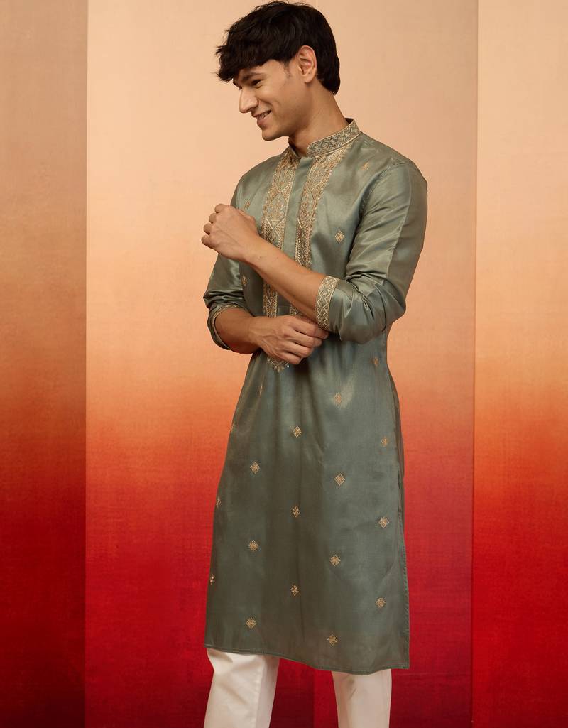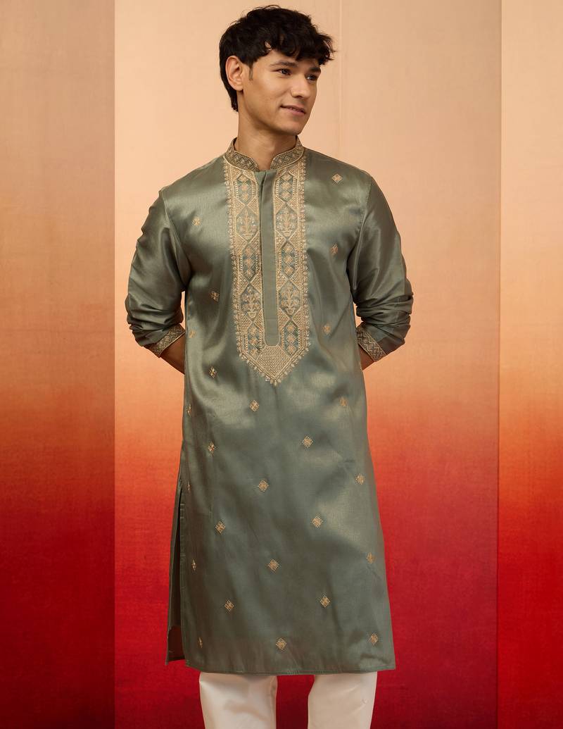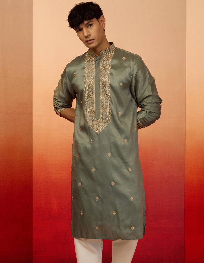 Product Name | Men's Mint Green Resham Embroidered Silk Kurta Premium Festive | |