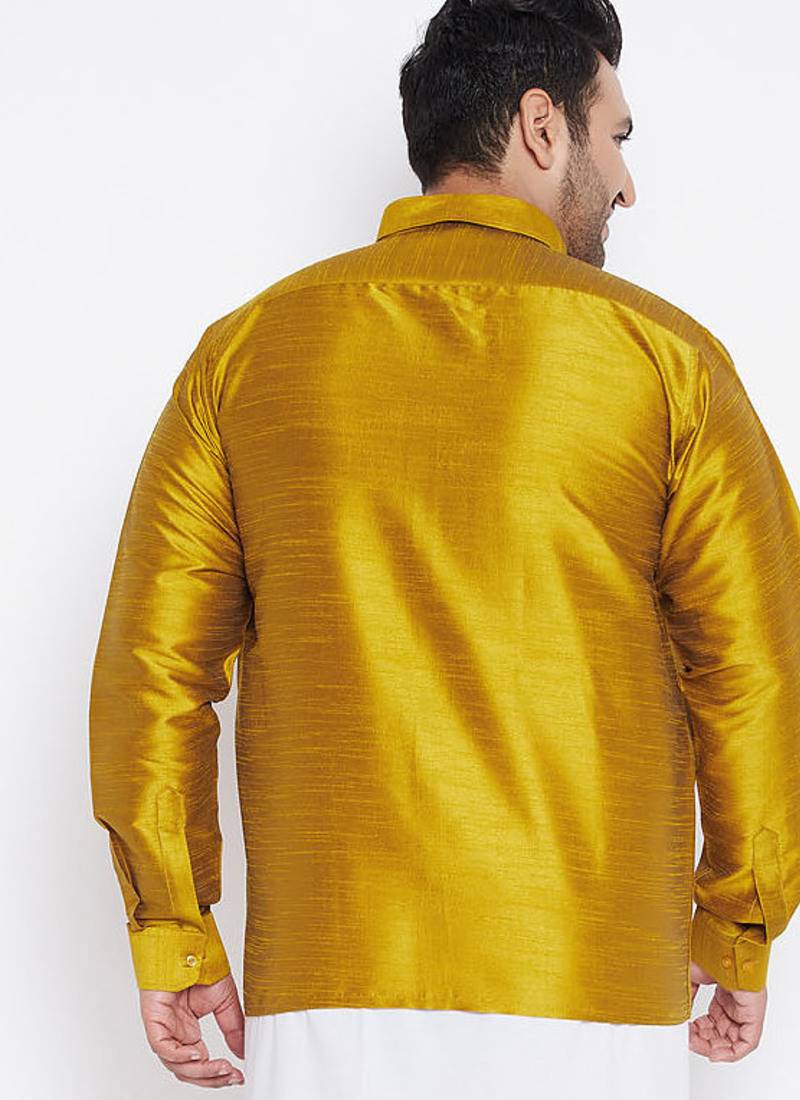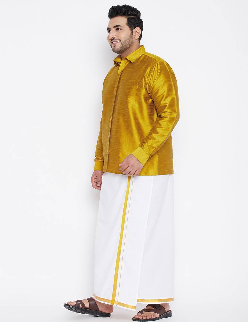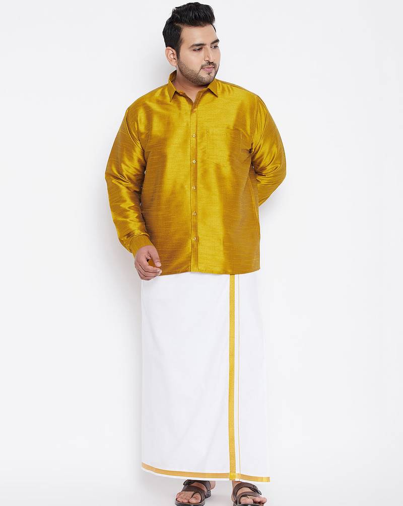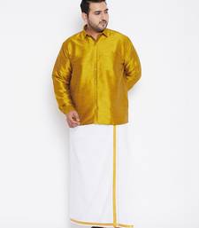 | Product Name | Men's Mustard And White Silk Blend Shirt And Mundu Set | |