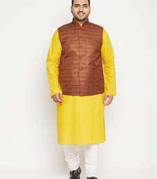 | Product Name | Mustard, Coffee Brown And White Cotton Blend Jacket Kurta Pyjama Set | |