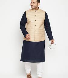 | Product Name | Navy Blue, Beige And White Cotton Blend Jacket Kurta Pyjama Set | |