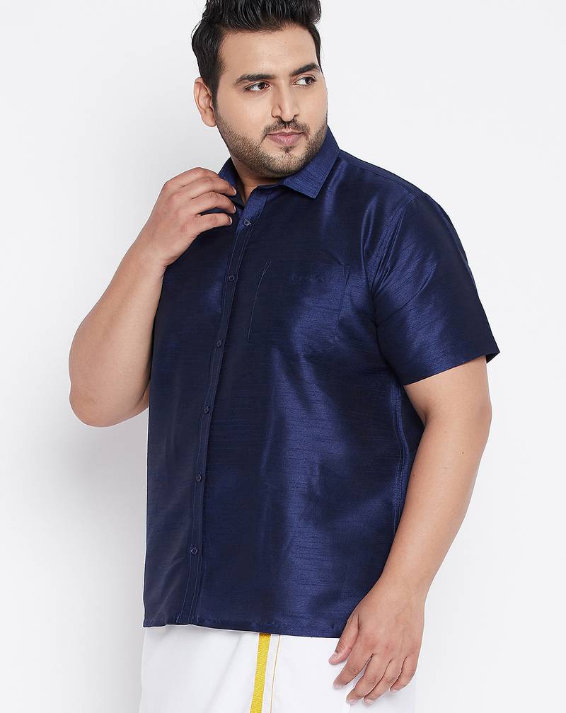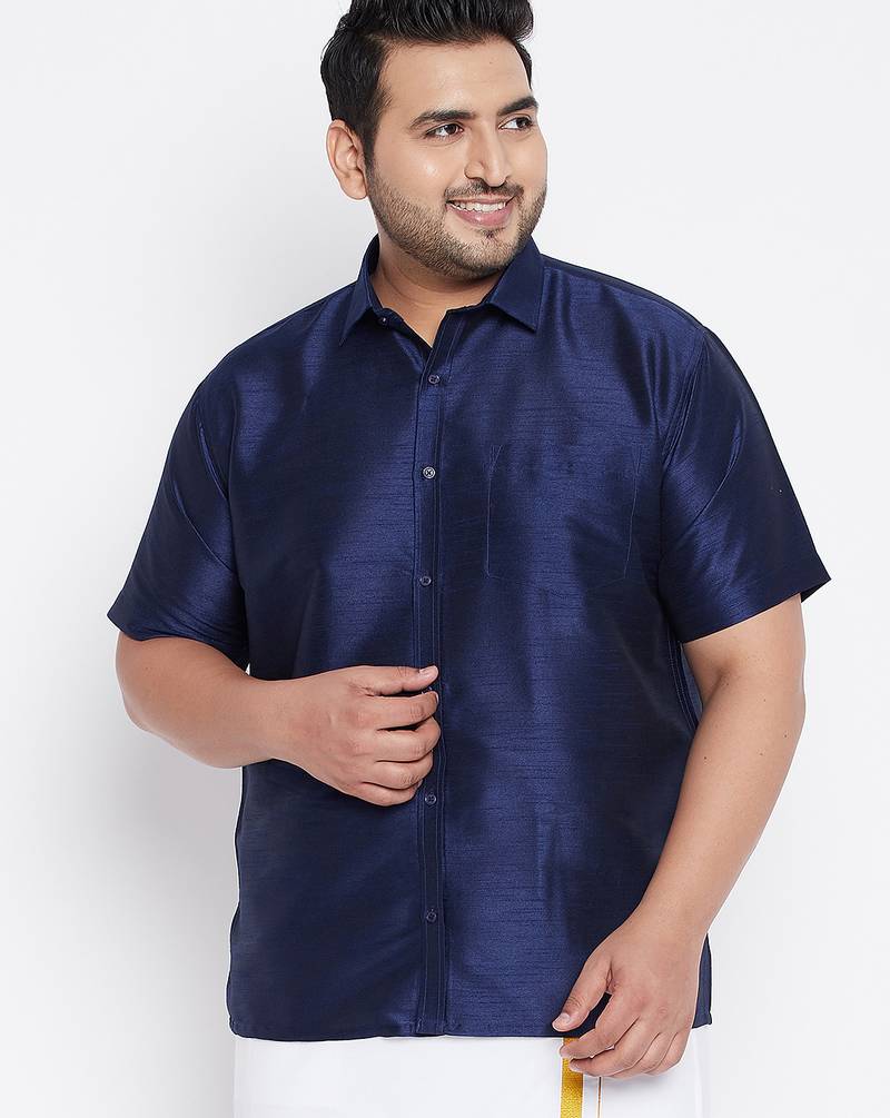 | Product Name | Men's Navy Blue Silk Blend Ethnic Shirt | |