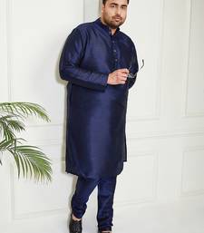 Men's navy blue silk blend kurta pyjama set