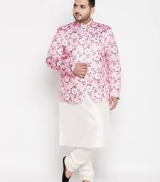 | Product Description | Vastramay Present A Digitally Floral Printed Silk Blend Multicolor Base Pink Jodhpuri, Has A Mandarin Collar, Long Sleeves, Front Button Placket With Buttons, Welt Pocket With Pocket Square. Comes With Cream Solid Silk Blend Kurta Pyjama Set. Knee Length Kurta Has A Mandarin Collar, Long Sleeves, Button Placket, Straight Hem And Silde Slits. Cream Color Pyjama Has A Waistband With Drawstring Closure. |
