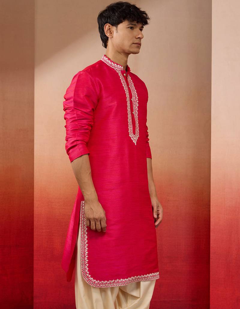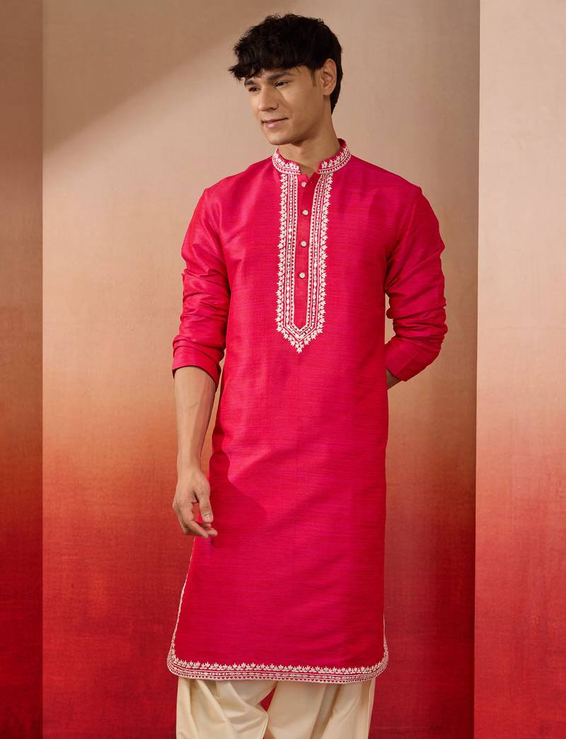 Product Name | Men's Pink Hand Embroidered Silk Kurta Premium Festive Wear | |