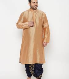 Men's rose gold and navy blue viscose blend kurta and dhoti set