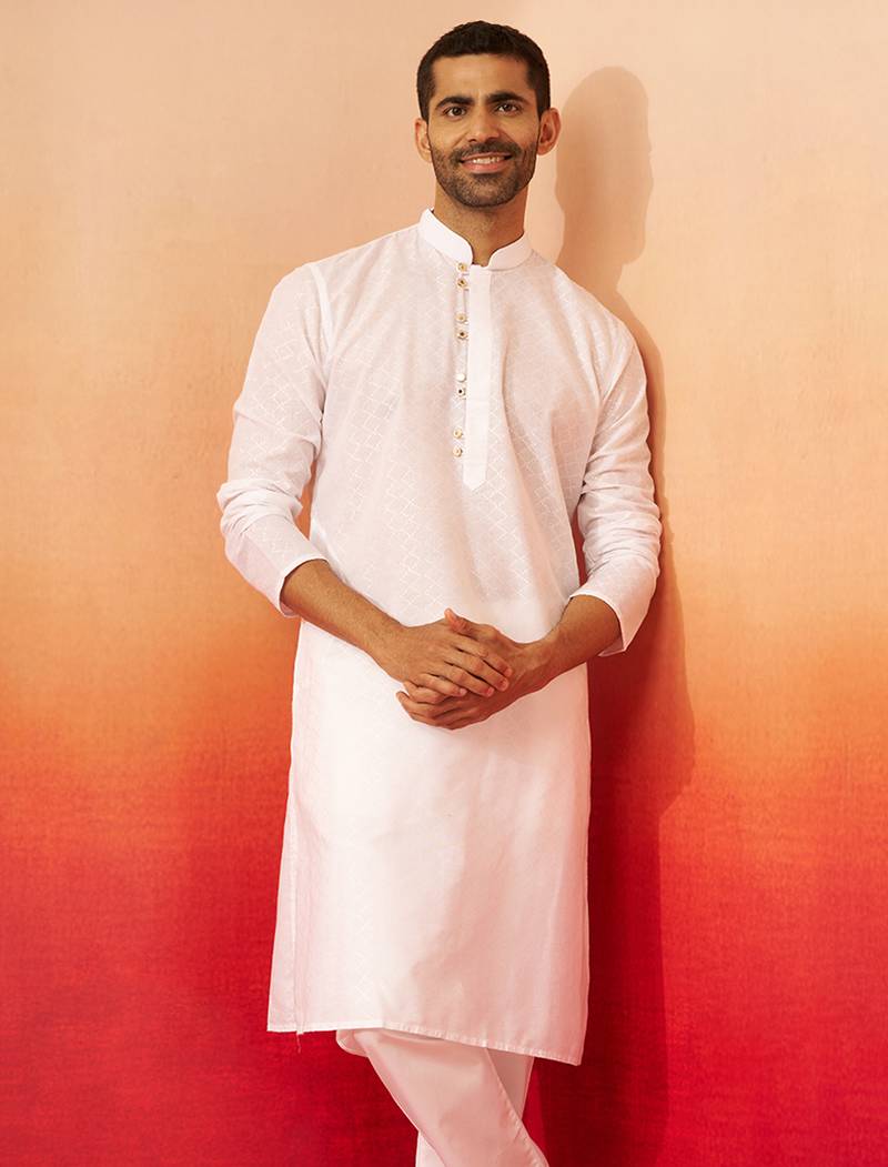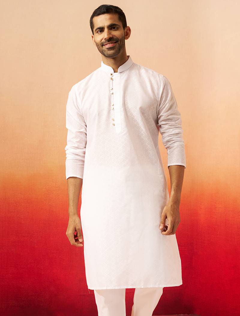 Product Name | Men White Cotton Geometric Jacquard Kurta Premium Barfi Pattern Versatile Wear | |