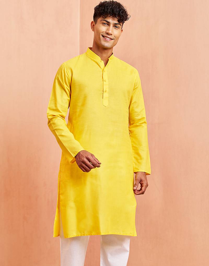 Product Name | Men Yellow Cotton Kurta Wedding Casual Summer Wear Long Kurta With Button Closure | |