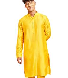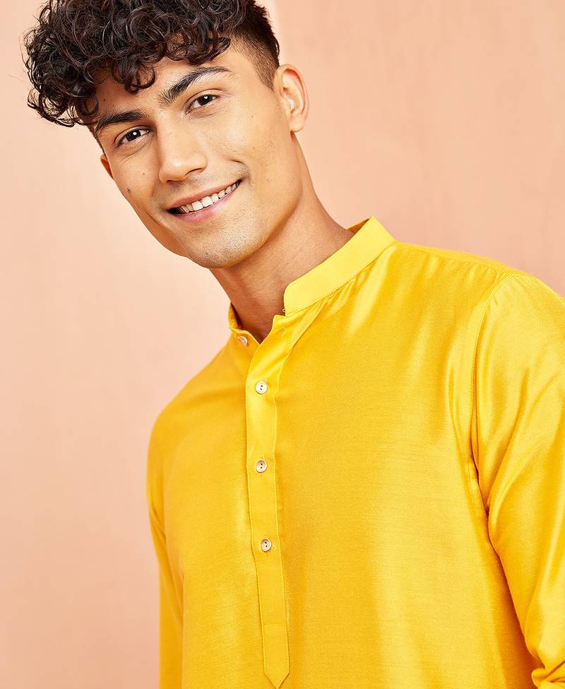Men yellow viscose kurta - long sleeve mandarin collar festive wedding traditional ethnic wear