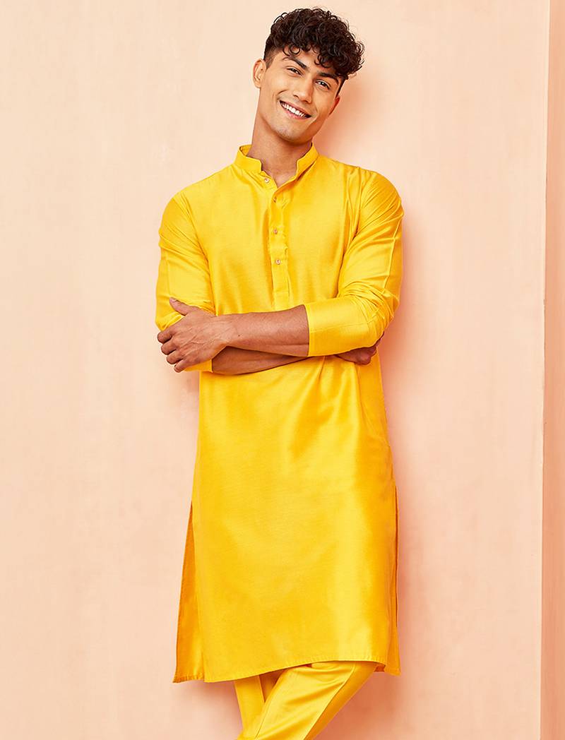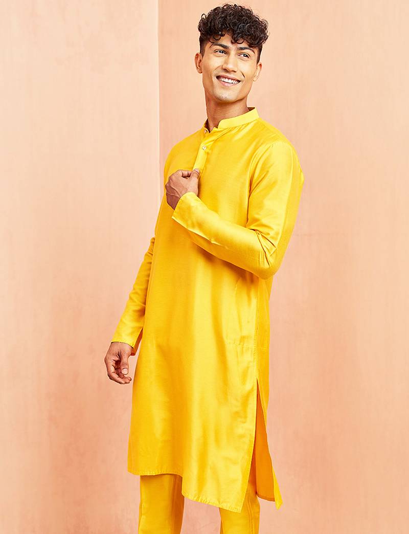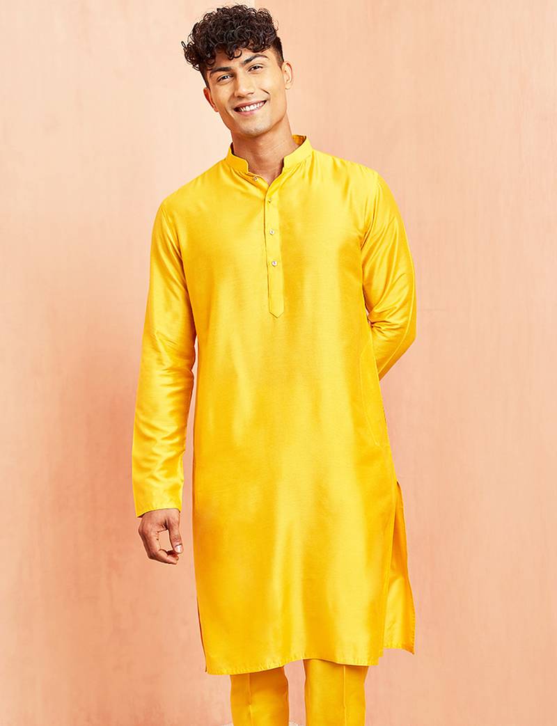 Product Name | Men Yellow Viscose Kurta Long Sleeve Mandarin Collar Festive Wedding Traditional Ethnic Wear | |