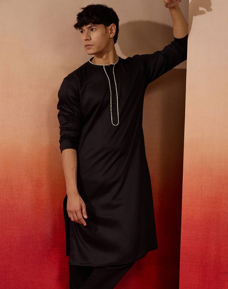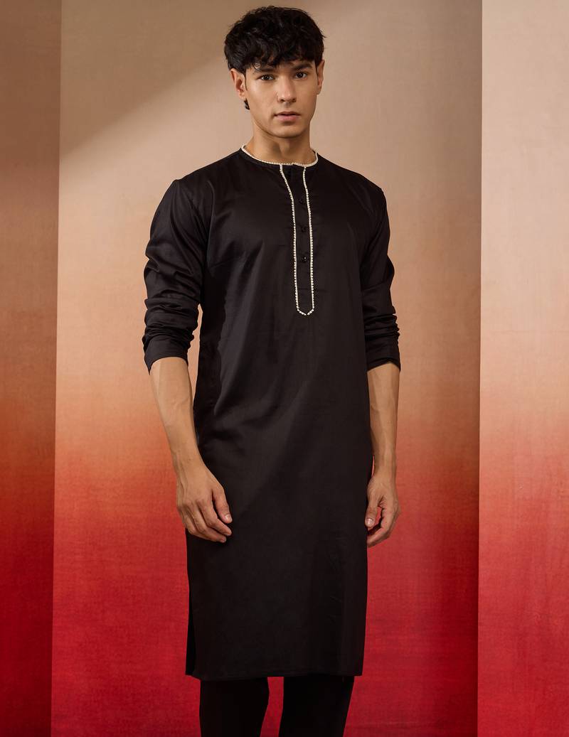 Product Name | Mens Black Cotton Millennium Kurta Lace Detail Navratri Festive Wear | |