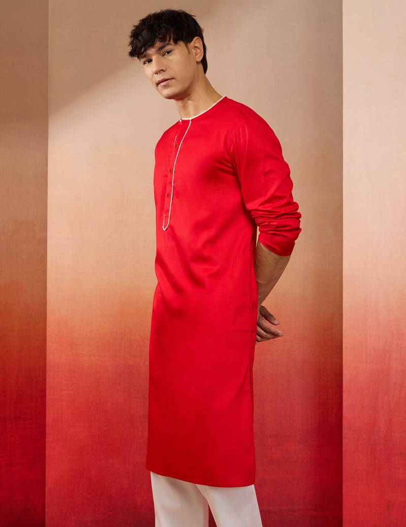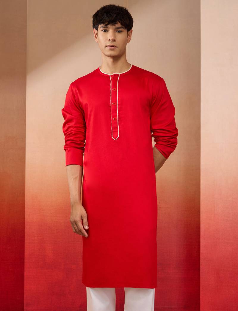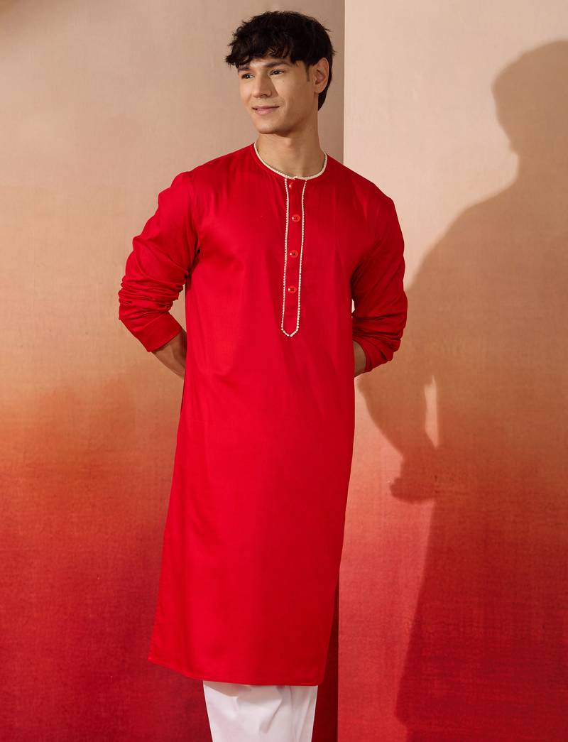 Product Name | Mens Red Cotton Millennium Kurta Lace Detail Navratri Festive Wear | |