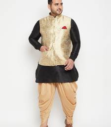 | Product Name | Black, Rose Gold And White Silk Blend Jacket Kurta Dhoti Set | |