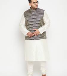 | Product Name | Plus Cream, Blue And White Silk Blend Jacket Kurta Pyjama Set | |