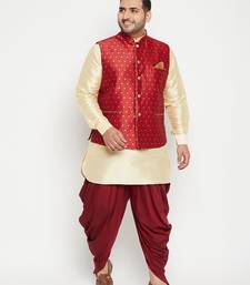Plus gold, maroon and white silk blend jacket kurta dhoti set
