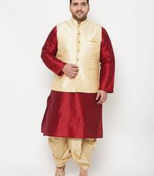 | Product Name | Maroon And Gold Silk Blend Jacket Kurta Dhoti Set | |