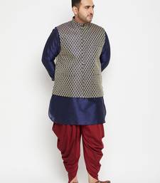 Plus navy blue, blue and white silk blend jacket kurta dhoti set