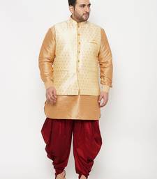 | Product Name | Rose Gold, Gold And White Silk Blend Jacket Kurta Dhoti Set | |