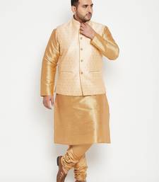 | Product Name | Rose Gold, Gold And White Silk Blend Jacket Kurta Pyjama Set | |