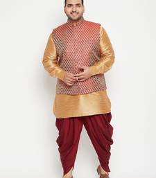 | Product Name | Rose Gold, Maroon And White Silk Blend Jacket Kurta Dhoti Set | |