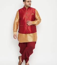 | Product Name | Rose Gold, Maroon And White Silk Blend Jacket Kurta Dhoti Set | |