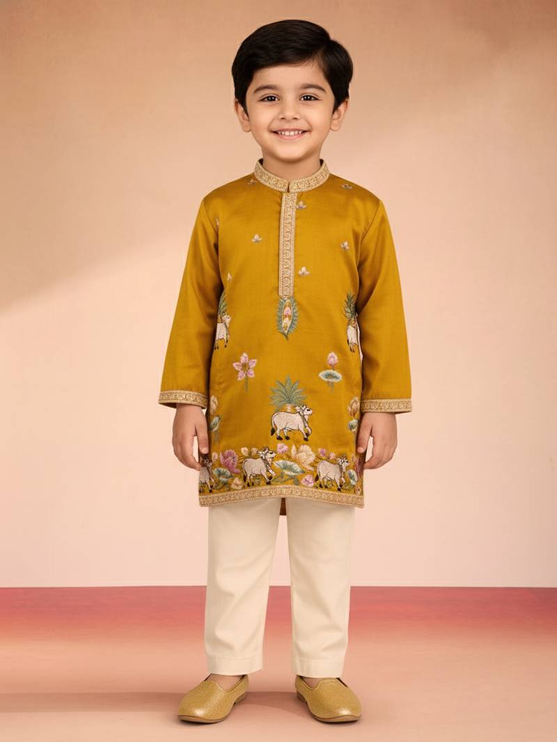 | Product Name | Boys Mustard Silk Kurta Pajama Set | |