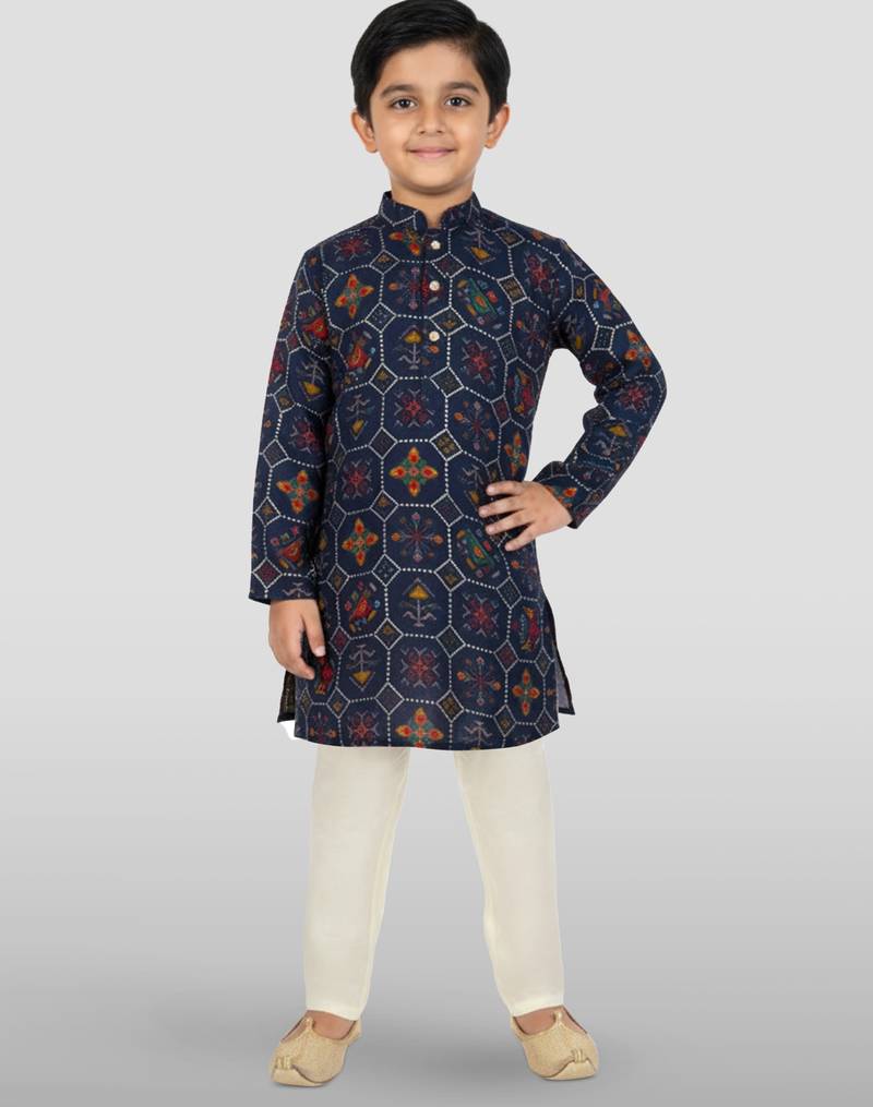 | Product Description | Experience Festive Elegance With Vastramay's Navy Blue Rayon Kurta Set. Features Stunning Sequin Geometric Patterns And Ethnic Motif Foil Print. Includes Contrasting Cream Silk Blend Pyjama For Sophisticated Ethnic Styling. |
