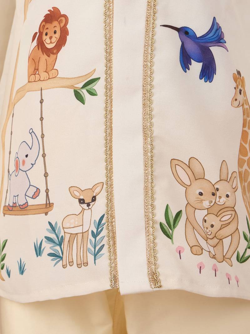 | Product Description | Create Timeless Festive Looks With This Elegant Off White Rayon Kurta Featuring Beautiful Animal Digital Prints At The Front. Complete With Cream Pyjama For Ethnic Sophistication. |