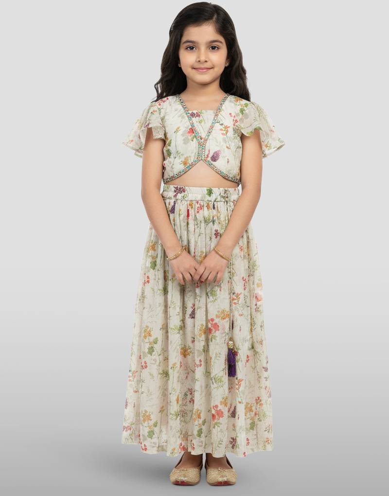 Girls cream georgette digital print lehenga choli set - festive ethnic wear for diwali