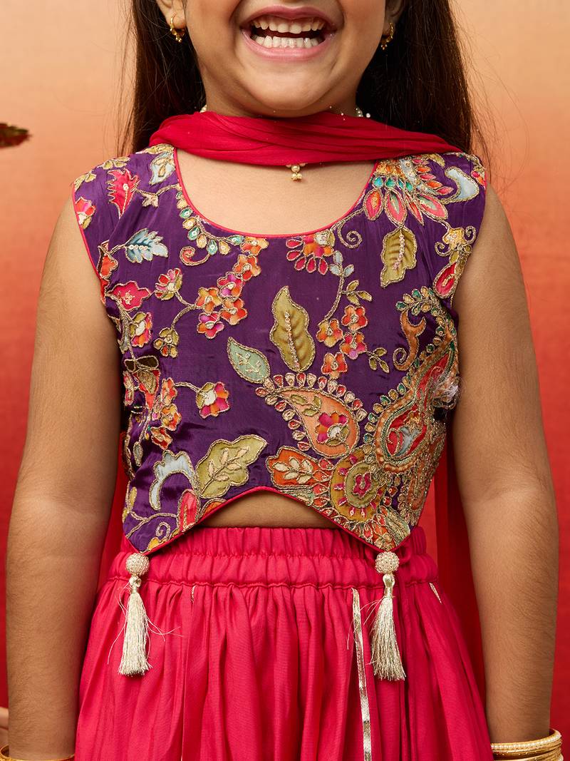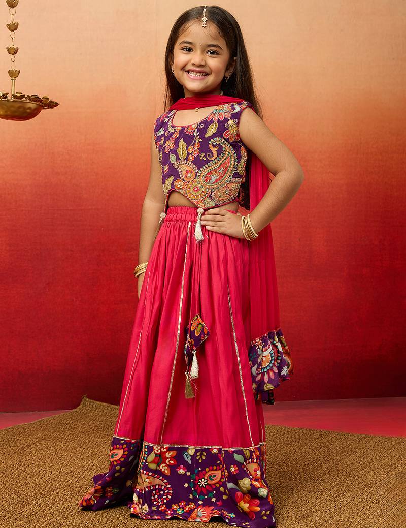 Product Name | Girls' Purple Crepe Lehenga Set With Paisley Embroidery Navratri Collection | |