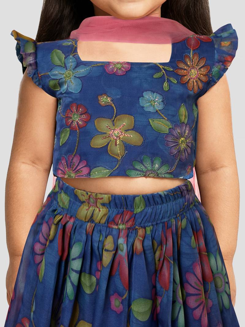 Product Name | Kids Blue Organza Lehenga Set Embroidered Diwali Festival Outfit | |