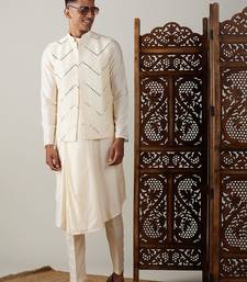 | Product Name | Black Mirror Work Nehru Jacket With Cream Kurta Pyjama Set | Contrast 3 Piece Festive Ethnic Wear | |