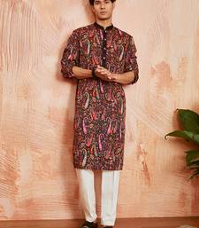 Black paisley print viscose blend kurta with cream viscose pyjama | festive ethnic wear