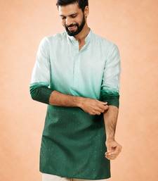 | Product Name | Vastramay Men Bottle Green Silk Blend Ombre Sequin Kurta | Mid Length Thigh Cut | All Over Geometric Sequin | |