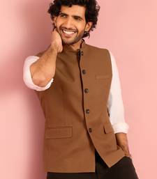 | Product Name | Brown Nehru Jacket | Self Textured Imported Suiting With Satin Lining | Wedding Wear | |