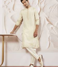 Cream tissue silk zari embroidered kurta with satin pyjama set | 2-piece regal festive ethnic wear
