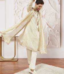Cream tissue silk zari kurta with satin pyjama and lace dupatta set | 3-piece luxury festive ethnic wear