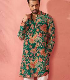 Green printed & embroidered crepe kurta | diwali wedding festive wear